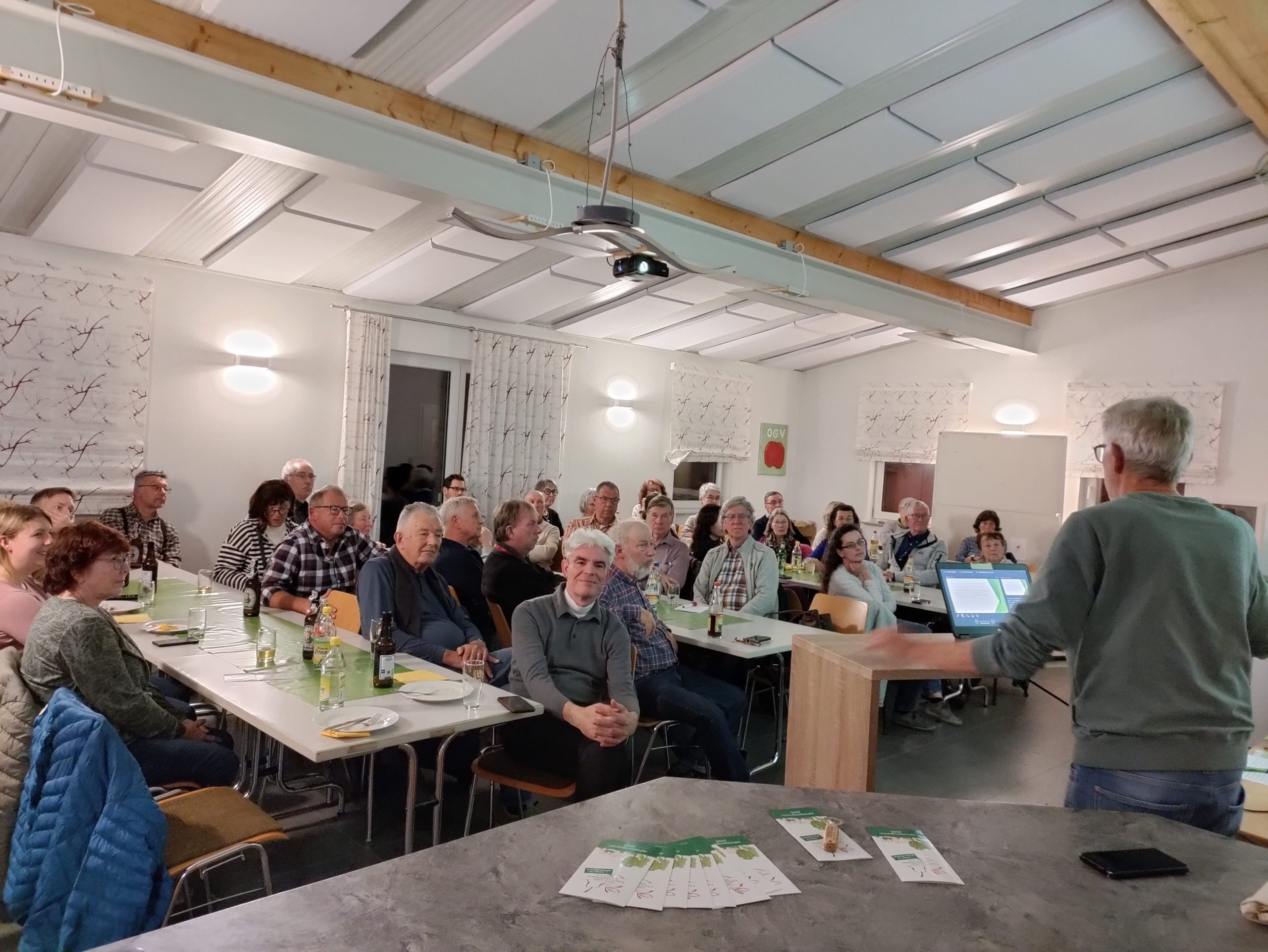 Am Freitag, den 27.03., besuchten rund 30 Interessierte den Vortrag unseres 2. Vorstandes Uli Kirchenbauer zum Thema „Naturnahe Gärten“. Einlass war um 18 Uhr. Zunächst konnten sich die Gäste mit üppig gefüllten Tellern mit verschiedenen Salaten oder heißen Würsten mit Senf und Brötchen stärken, bevor sie pünktlich um 19 Uhr dem Vortrag lauschen konnten.