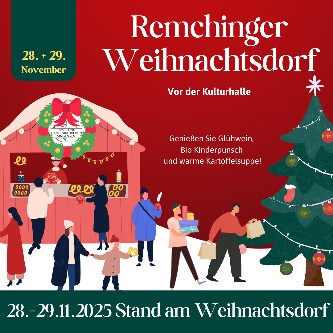 Zur besinnlichen Jahreszeit laden wir Sie herzlich zum Adventlichen Nachmittag ein. Hier oder im Gemeindeblatt finden sich kurz vor der Veranstaltung weitere Informationen. Wir wünschen frohe Weihnachten und besinnliche Feiertage! Schauen Sie demnächst wieder auf unserer Internetseite vorbei, auch 2026 bieten wir wieder Köstlichkeiten, Wissen und gute Lauen rund um den Obst- und Gartenbau.