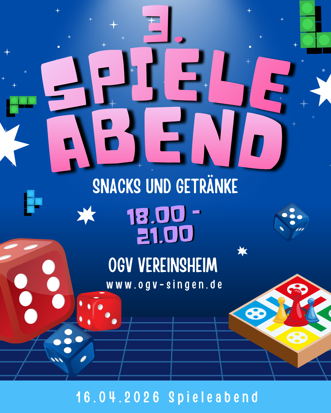 Herzliche Einladung zum dritten Spieleabend! 🎲 Bringt gerne Freunde oder Familie mit.Bei uns ist jeder willkommen, egal ob Mitglied oder nicht 😊 Wir haben ein paar Spiele da, bringt aber gerne etwas mit.Wir freuen uns auf alle Interessierten von klein bis groß! 🙋🏻‍♀️🙋🏻 Freier Eintritt.